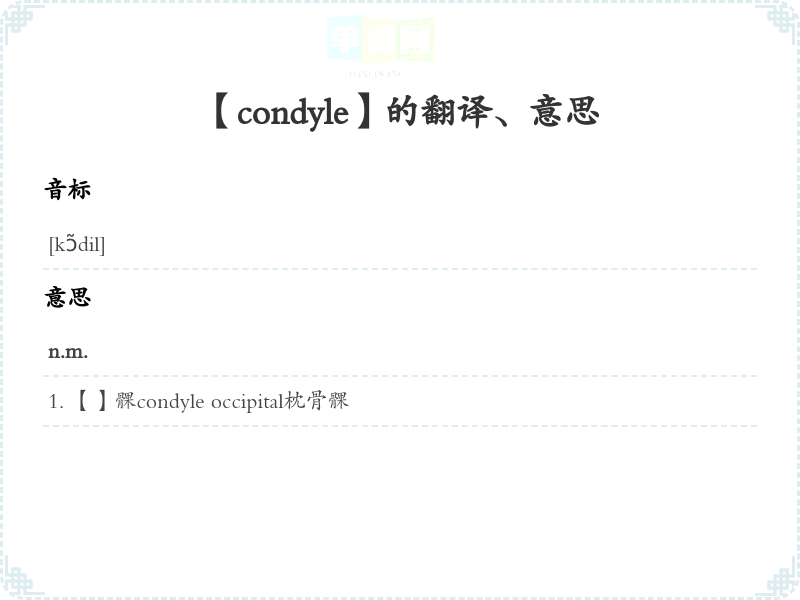 【condyle】是什么意思、字义解释