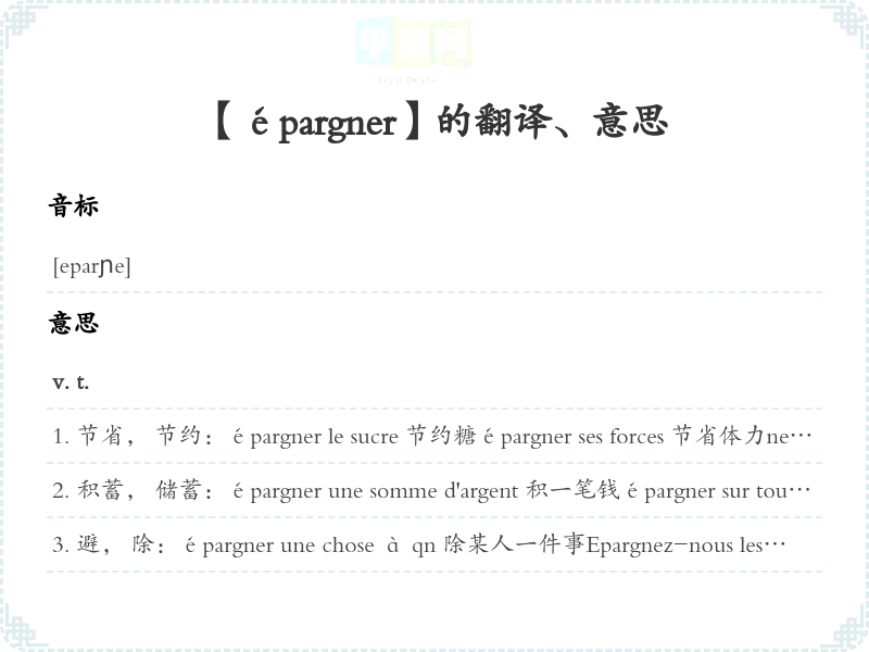 【épargner】 联想:、 近义词:、 反义词: 联想词