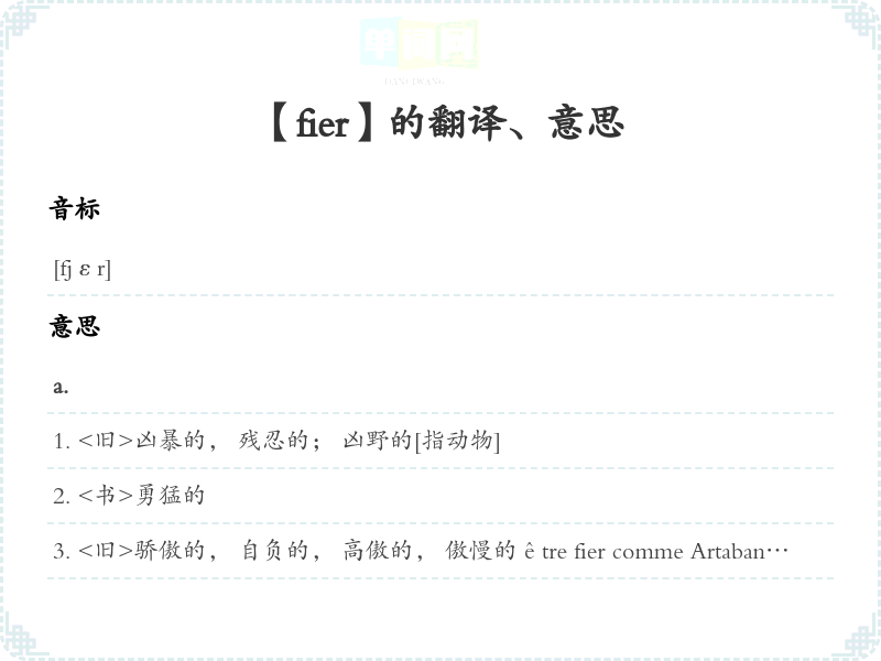 【fier】 联想、 名词变化:、 副词变化:、 近义词、 反义词、 同音、近音词 联想词