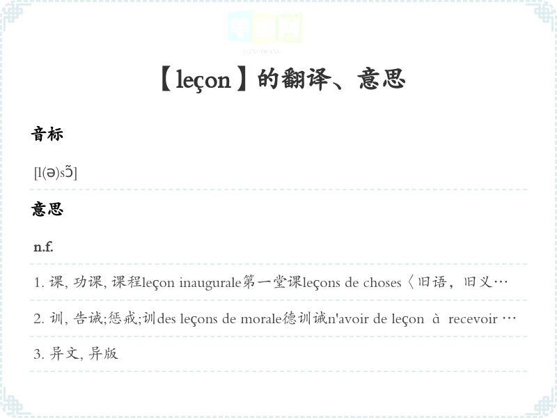 【leçon】是什么意思、字义解释