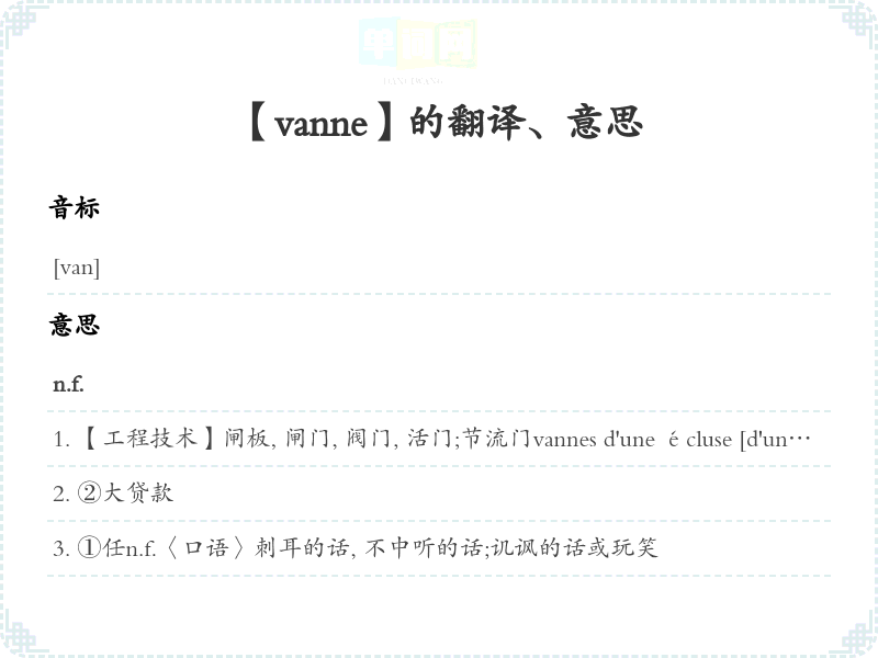 【vanne】是什么意思、字义解释