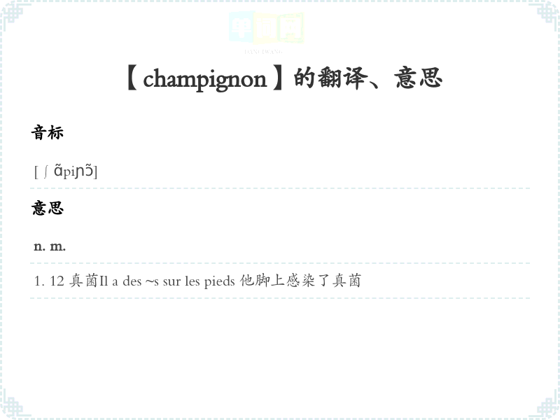 【champignon】是什么意思、字义解释