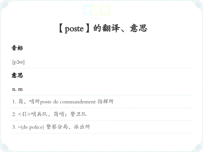 【poste】是什么意思、字义解释