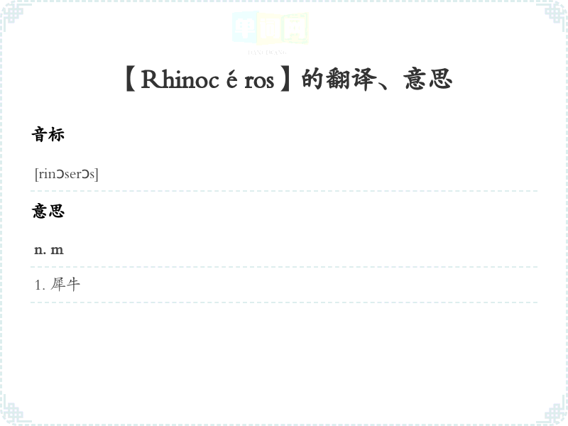 【Rhinocéros】是什么意思、字义解释