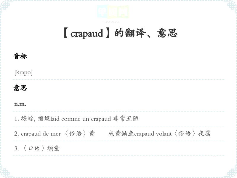 【crapaud】是什么意思、字义解释