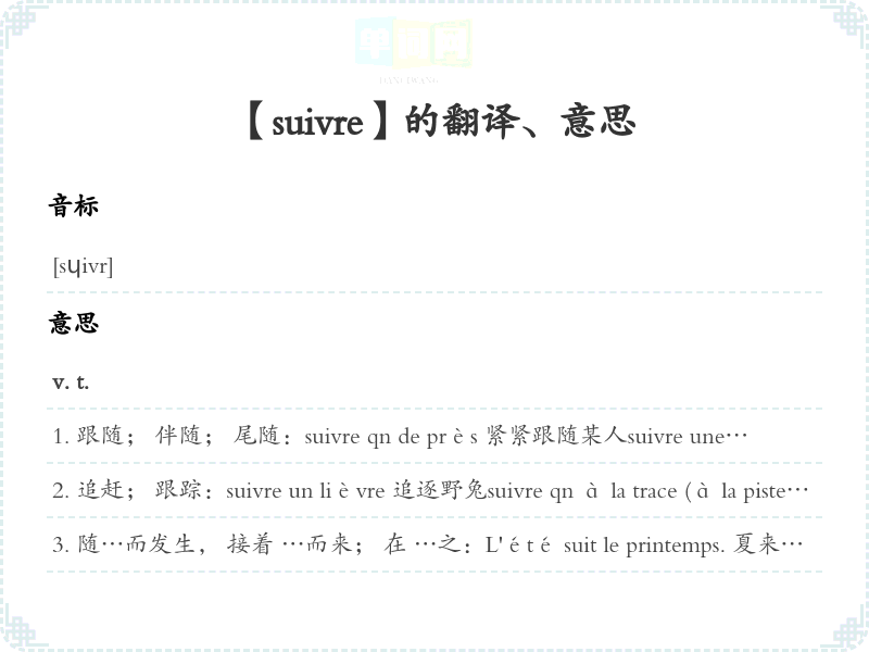 【suivre】是什么意思、字义解释