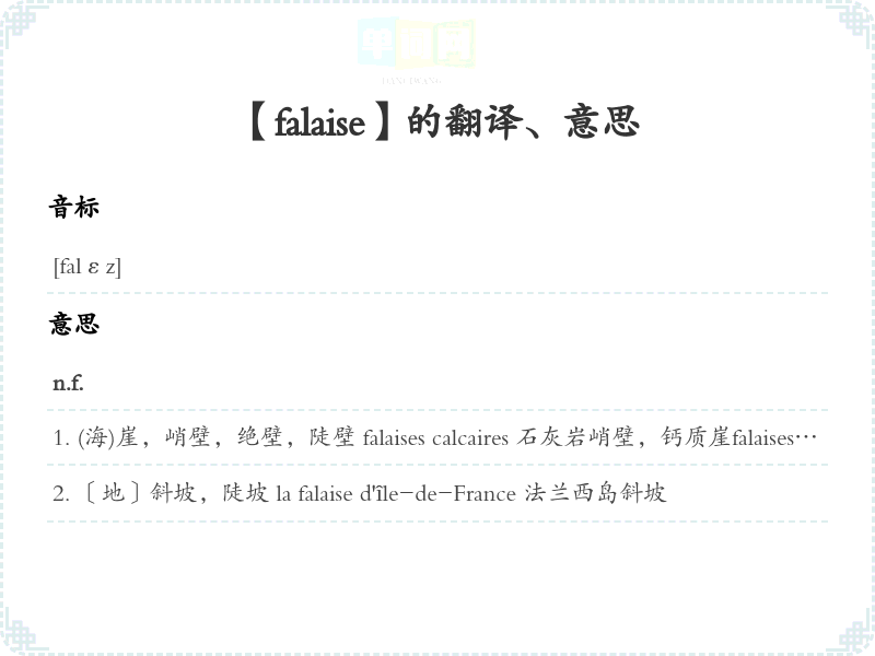 【falaise】是什么意思、字义解释