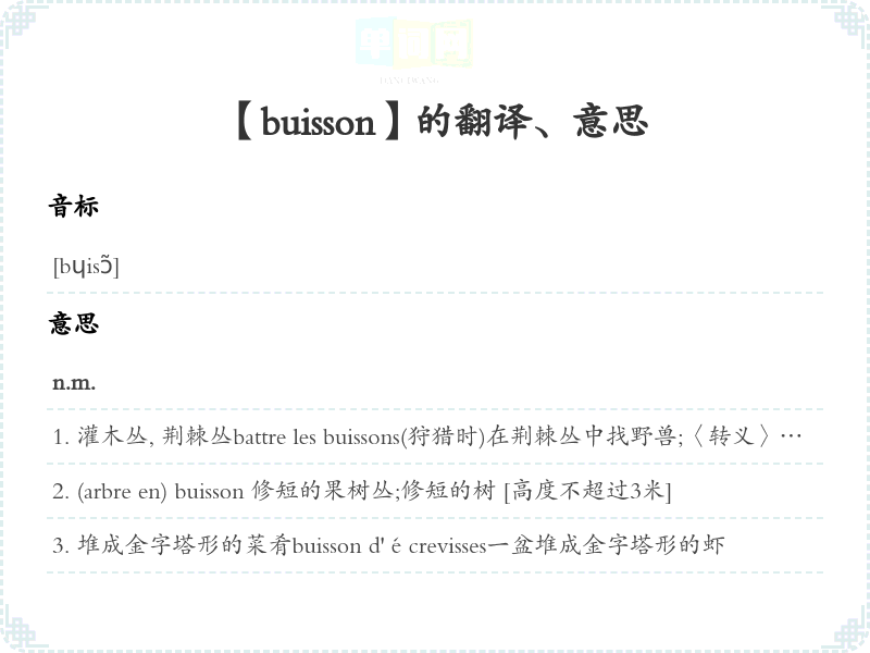 【buisson】是什么意思、字义解释