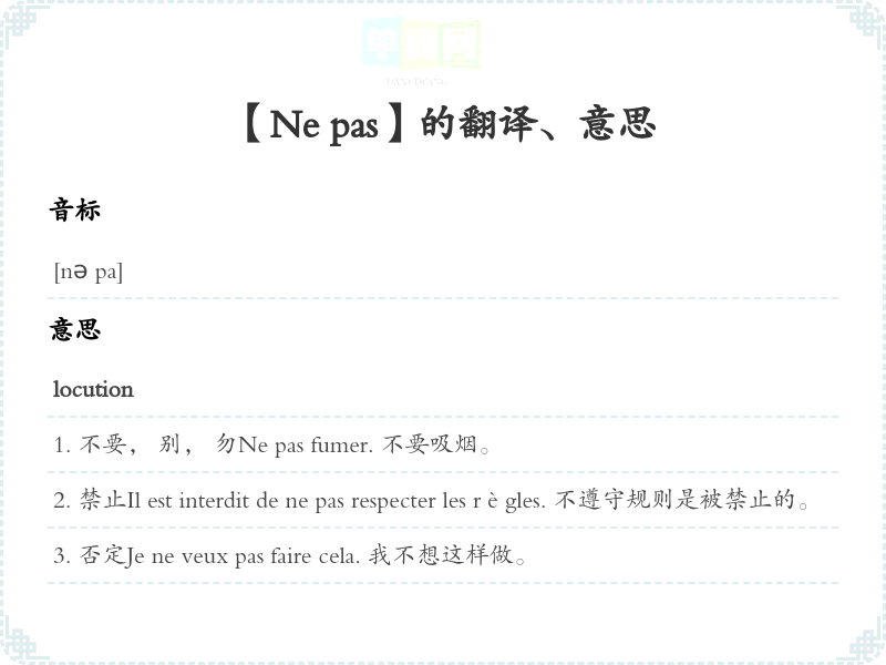 【Ne pas】是什么意思、字义解释