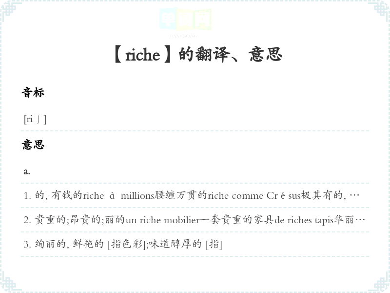 【riche】是什么意思、字义解释