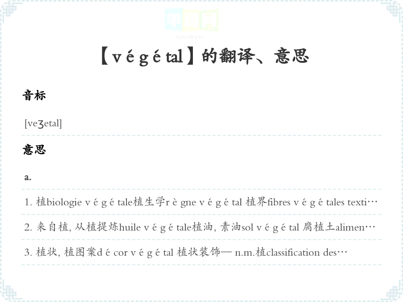 【végétal】是什么意思、字义解释