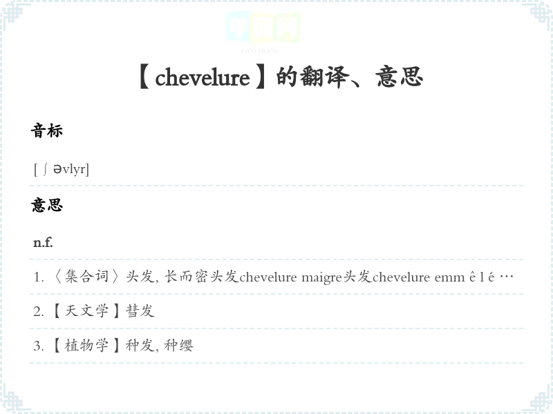 【chevelure】 联想:、 近义词:、 反义词: 联想词
