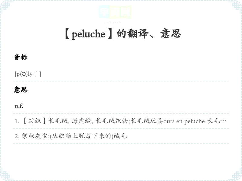 【peluche】是什么意思、字义解释