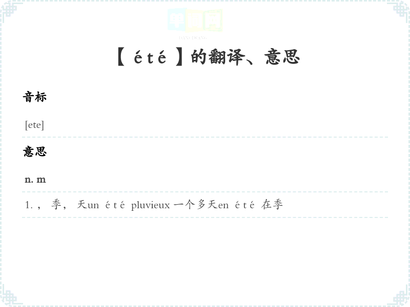 【été】是什么意思、字义解释