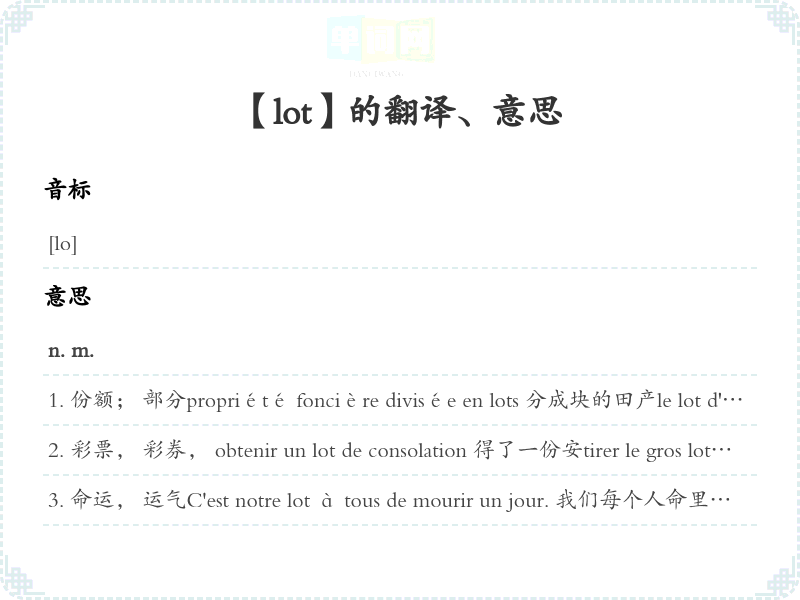 【lot】 联想:、 近义词:、 反义词: 联想词