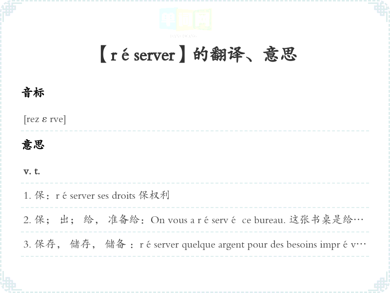 【réserver】是什么意思、字义解释