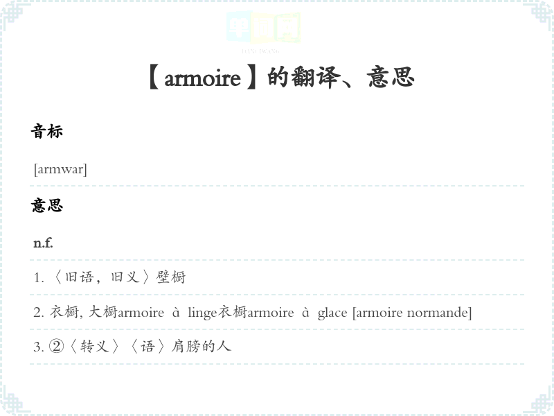 ①带镜衣橱armoire à pharmacie药柜armoire frigorifique大冰箱