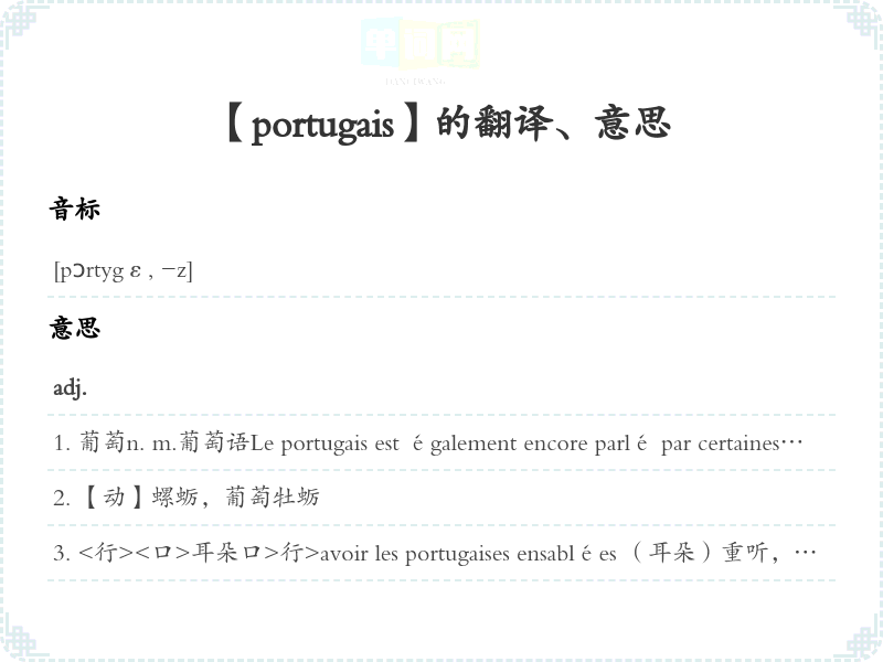 【portugais】是什么意思、字义解释