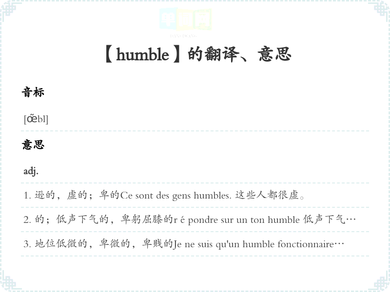 【humble】是什么意思、字义解释