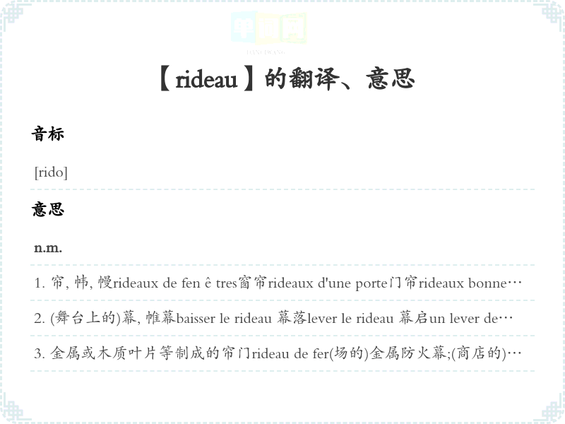 【rideau】 联想:、 近义词:、 反义词: 联想词