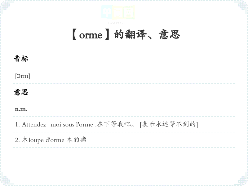 Attendez-moi sous l'orme .在下等我吧。 [表示永远等不到的]