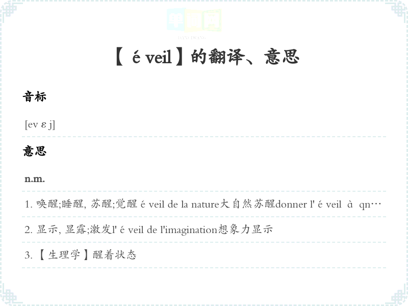 【éveil】是什么意思、字义解释
