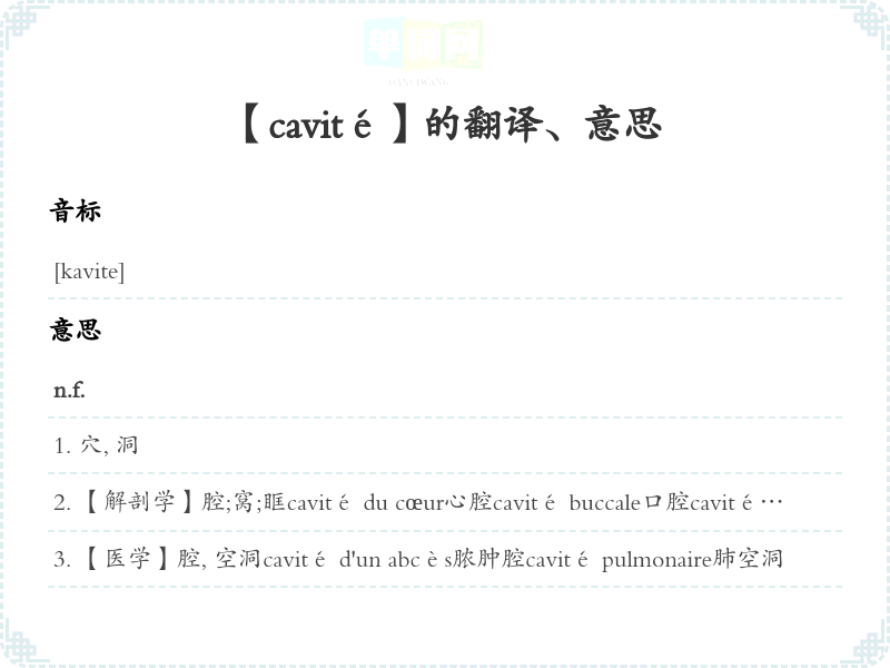 【cavité】是什么意思、字义解释