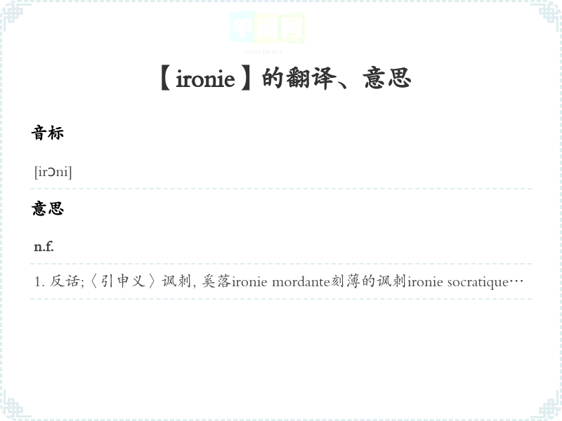 【ironie】是什么意思、字义解释