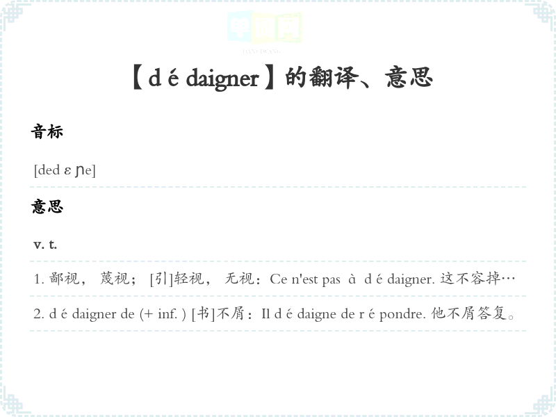 【dédaigner】是什么意思、字义解释