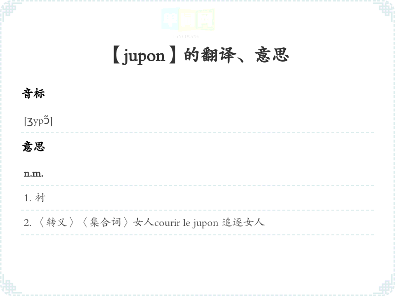 〈转义〉〈集合词〉女人courir le jupon 追逐女人