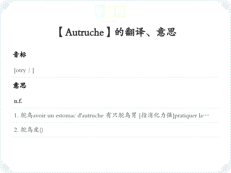 【Autruche】是什么意思、字义解释