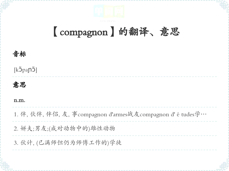 【compagnon】是什么意思、字义解释