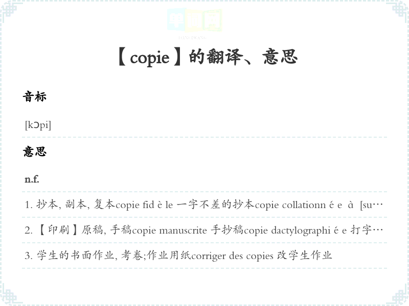 【copie】是什么意思、字义解释