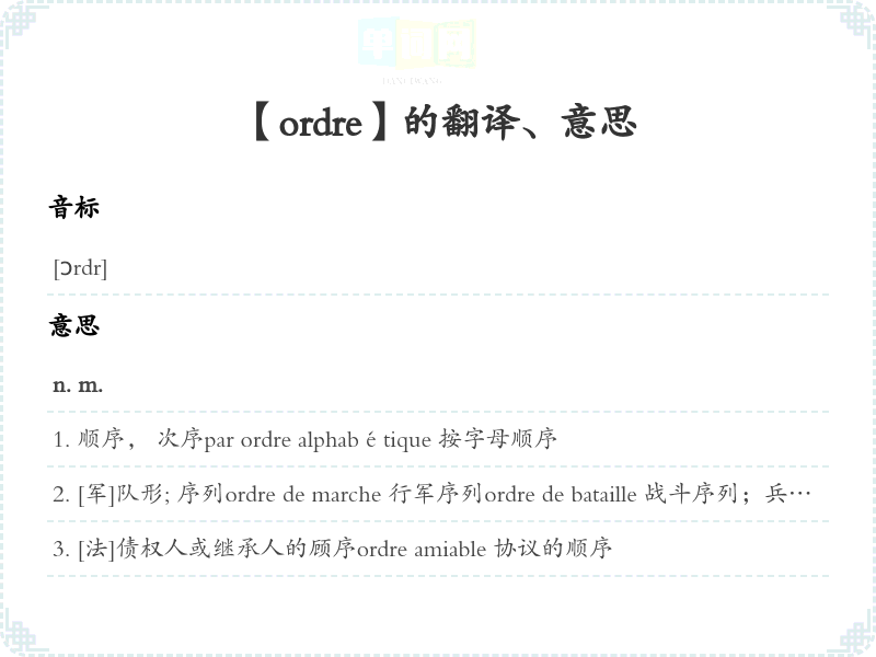 【ordre】是什么意思、字义解释
