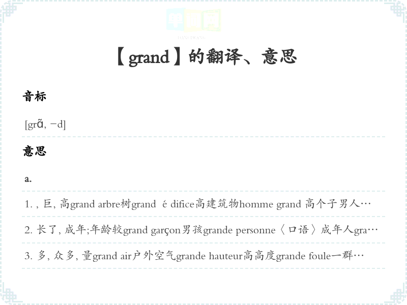 【grand】是什么意思、字义解释