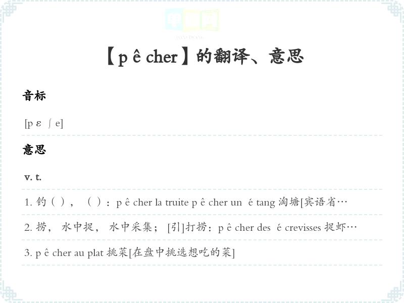 【pêcher】是什么意思、字义解释
