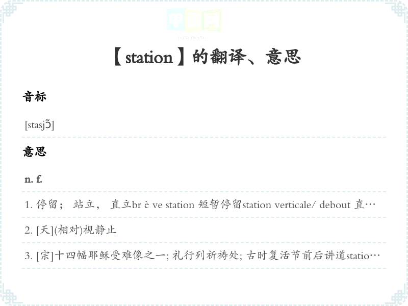 【station】是什么意思、字义解释