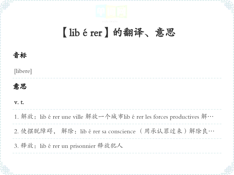 【libérer】是什么意思、字义解释