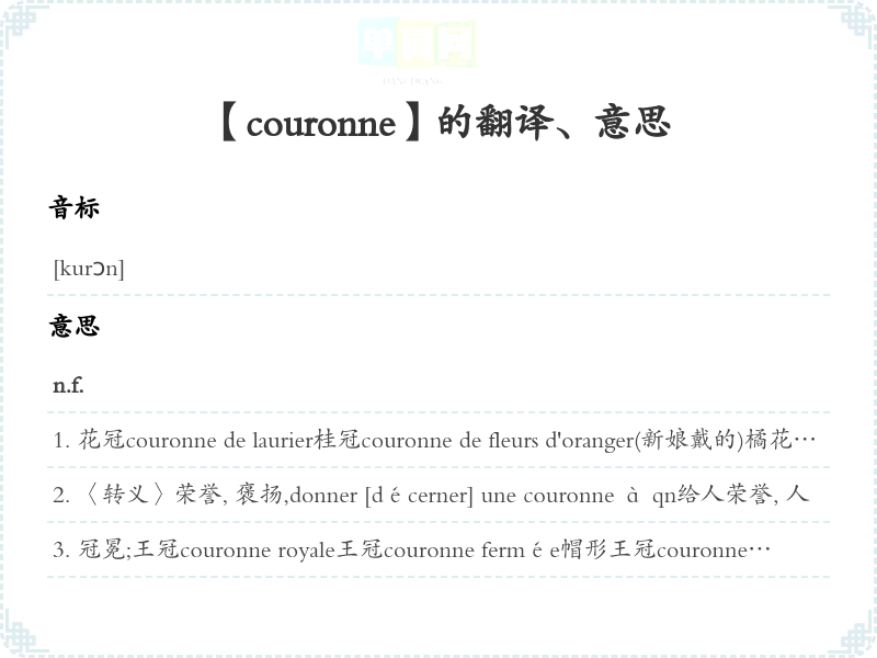 【couronne】是什么意思、字义解释