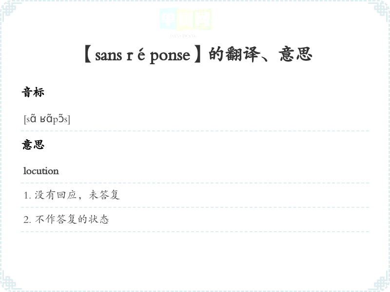 【sans réponse】是什么意思、字义解释