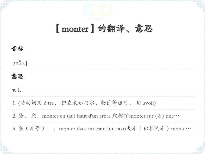 【monter】是什么意思、字义解释