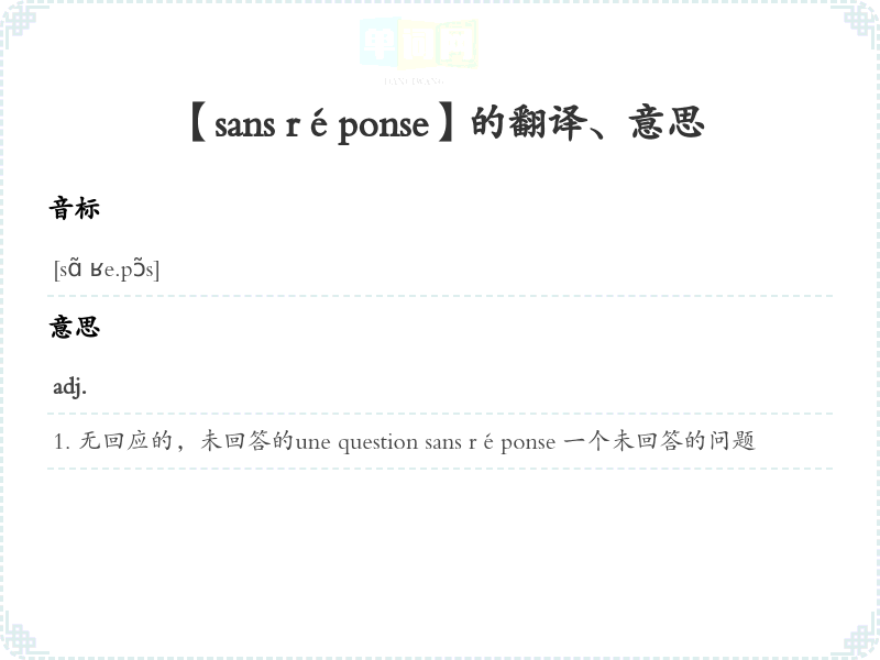 【sans réponse】是什么意思、字义解释