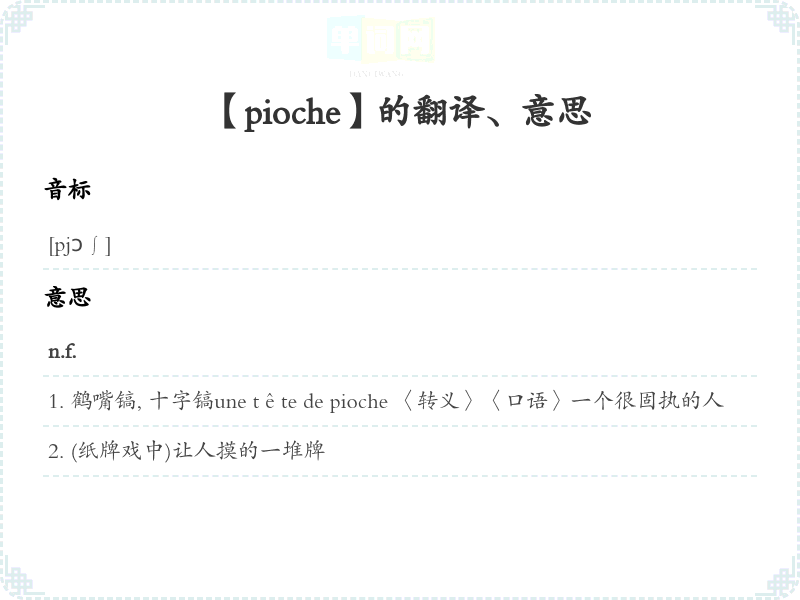 【pioche】是什么意思、字义解释