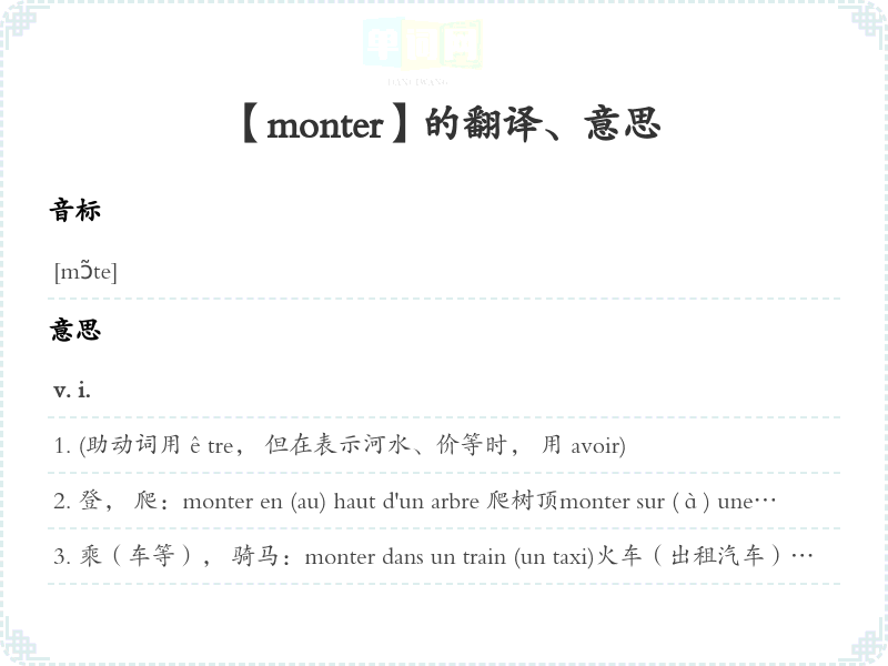 【monter】是什么意思、字义解释