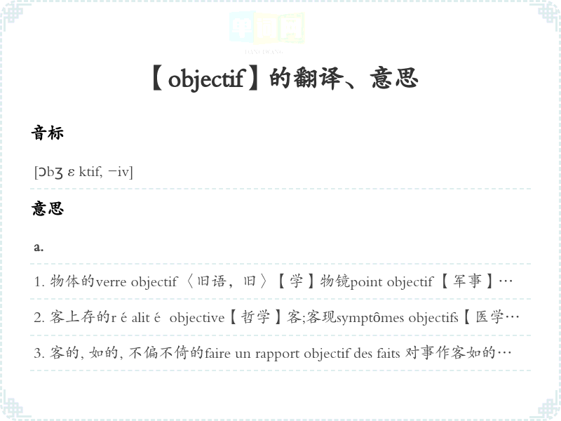 【objectif】是什么意思、字义解释