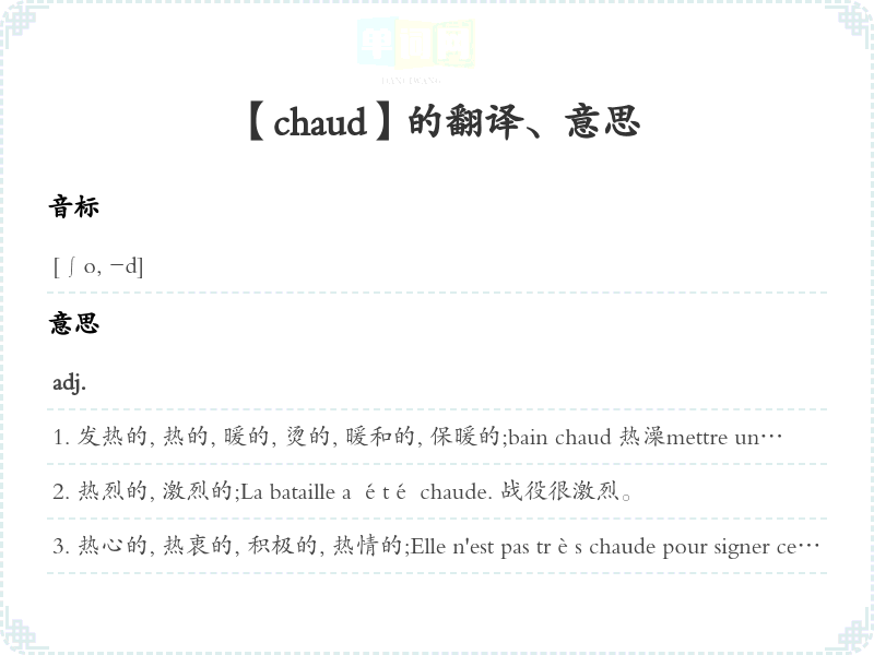 【chaud】是什么意思、字义解释