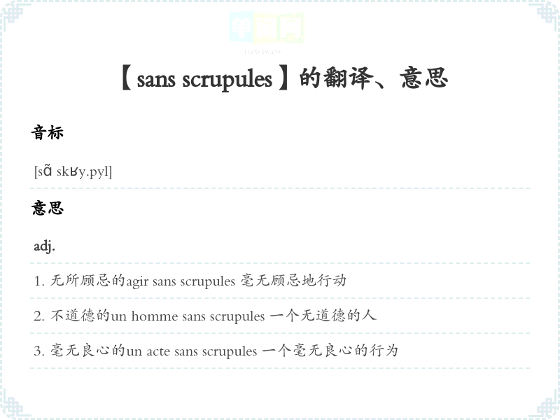 【sans scrupules】是什么意思、字义解释