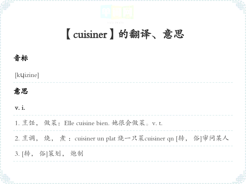 【cuisiner】是什么意思、字义解释