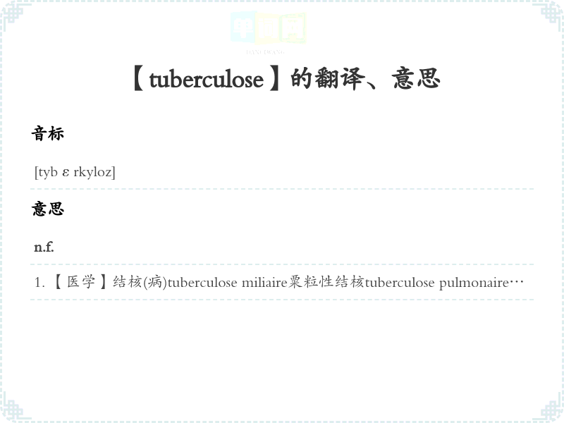 【tuberculose】是什么意思、字义解释