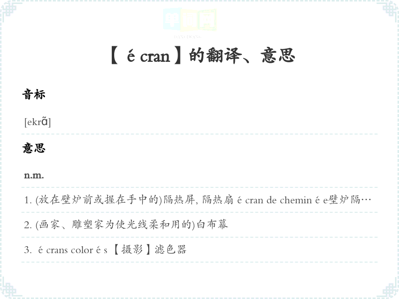 【écran】是什么意思、字义解释